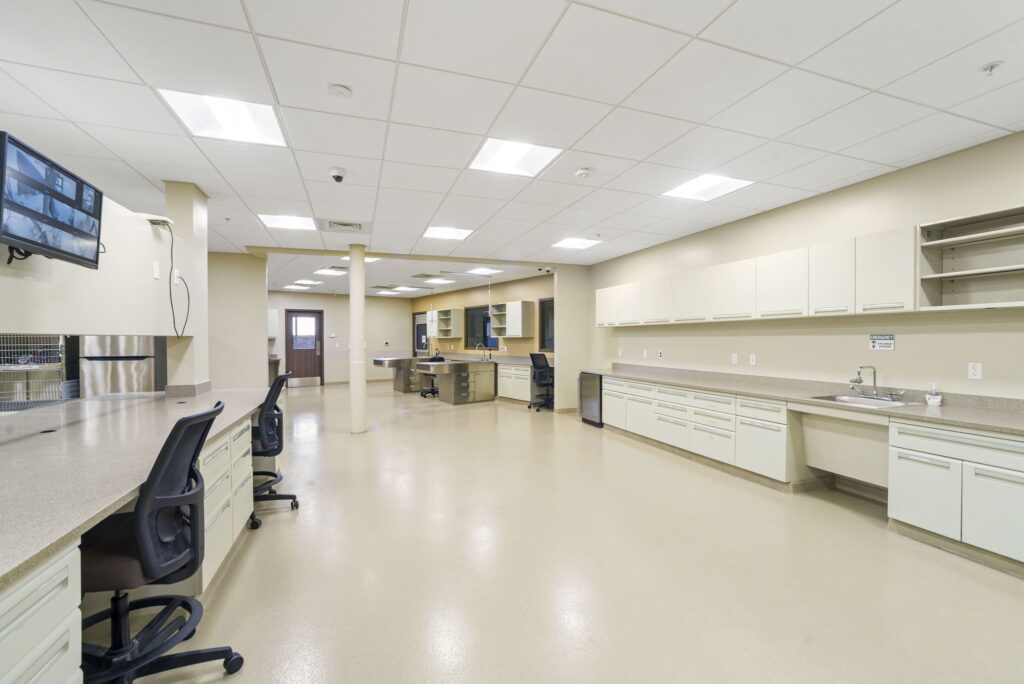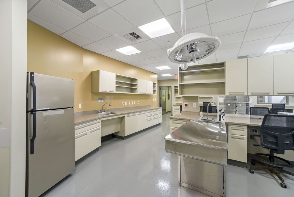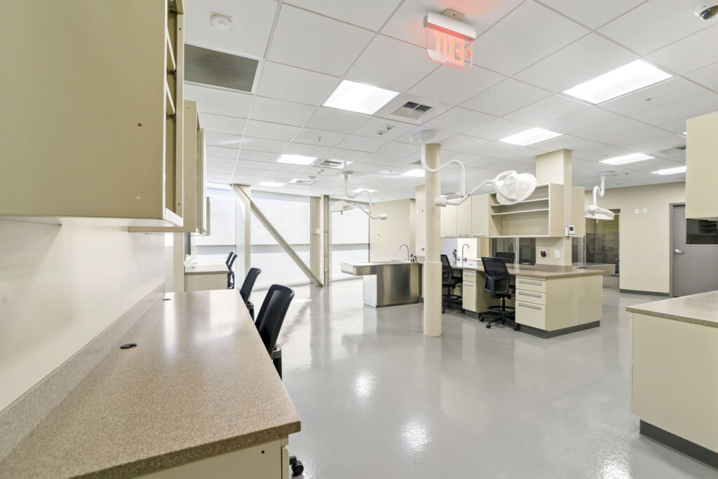 High End R&D Biotech Medical Sciences Space. Currently built out as a Veterinary Emergency Hospital & Surgical Center. Purposefully Designed with Surgical Workflow & Medical Grade Surfaces. Also Suitable for Most Any Lab Use: Biotech, Medical/Dental/Life Sciences. Ideally suited for R&D with it’s perimeter offices around a central collaborative workspace.